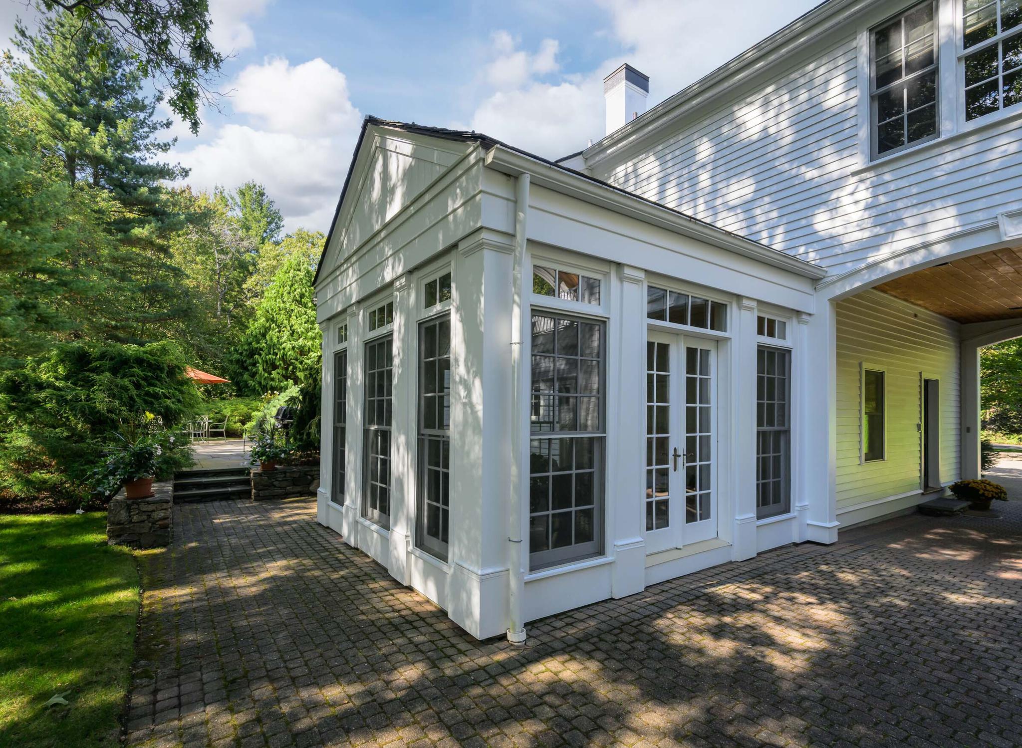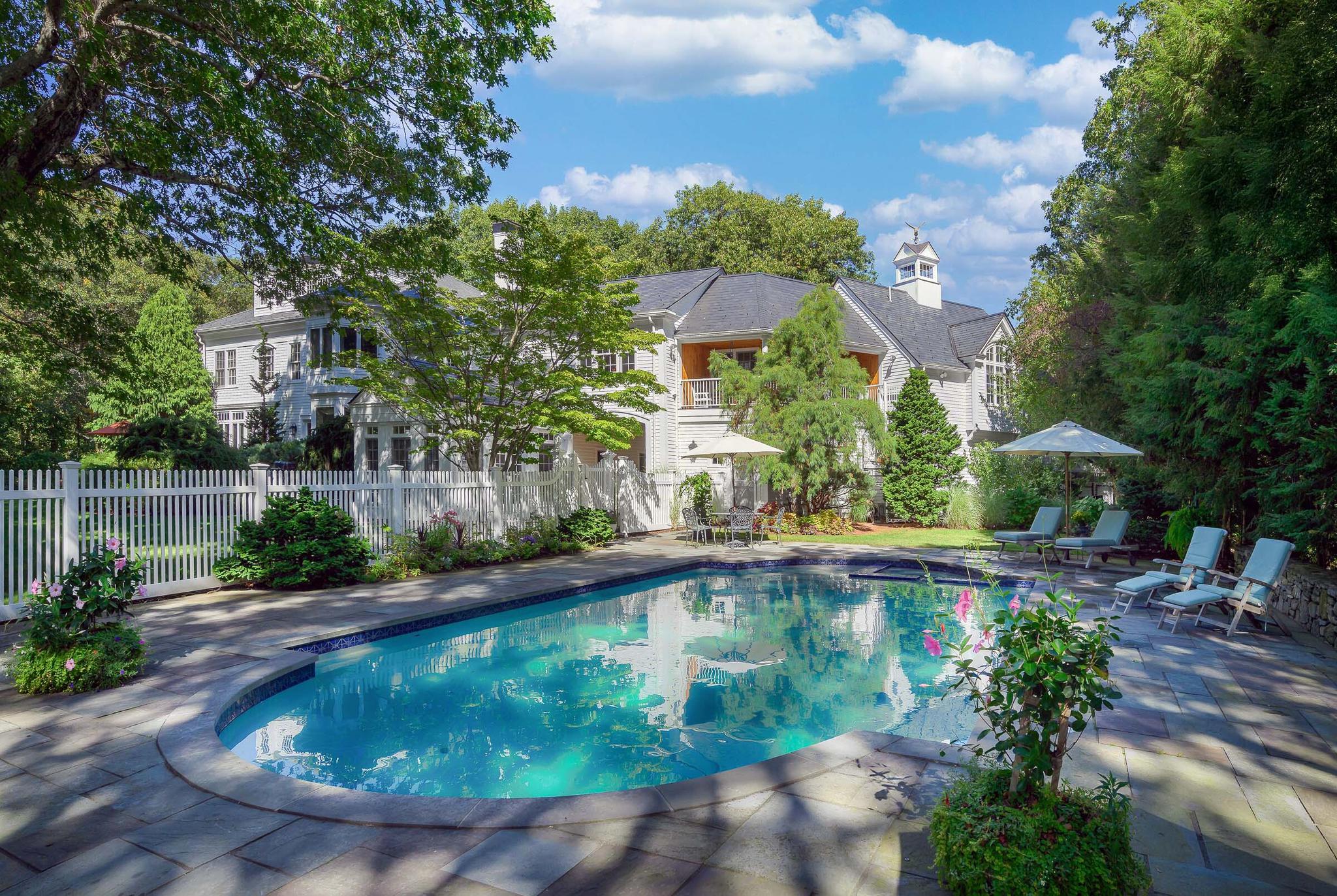Set on 7.41 breathtaking acres and embraced by more than 25 acres of protected conservation land, Southwinds is a masterclass in architectural harmony and natural beauty. Conceived in the spirit of an English country estate, the property unfolds through stone walls, sweeping lawns, and meticulously curated gardens, creating a sense of arrival that is both grand and intimate. Every outdoor space, from the terraces to the tennis court, has been thoughtfully designed for beauty, privacy, and effortless entertaining.