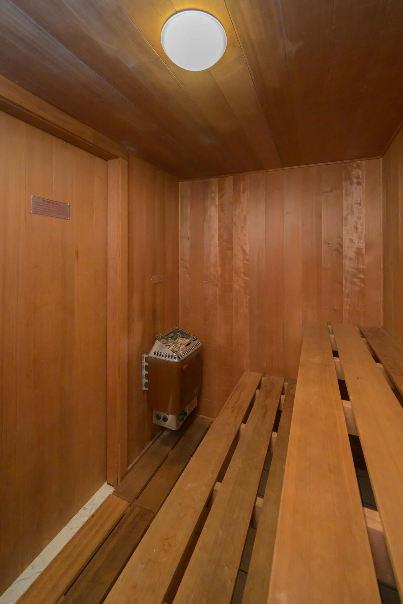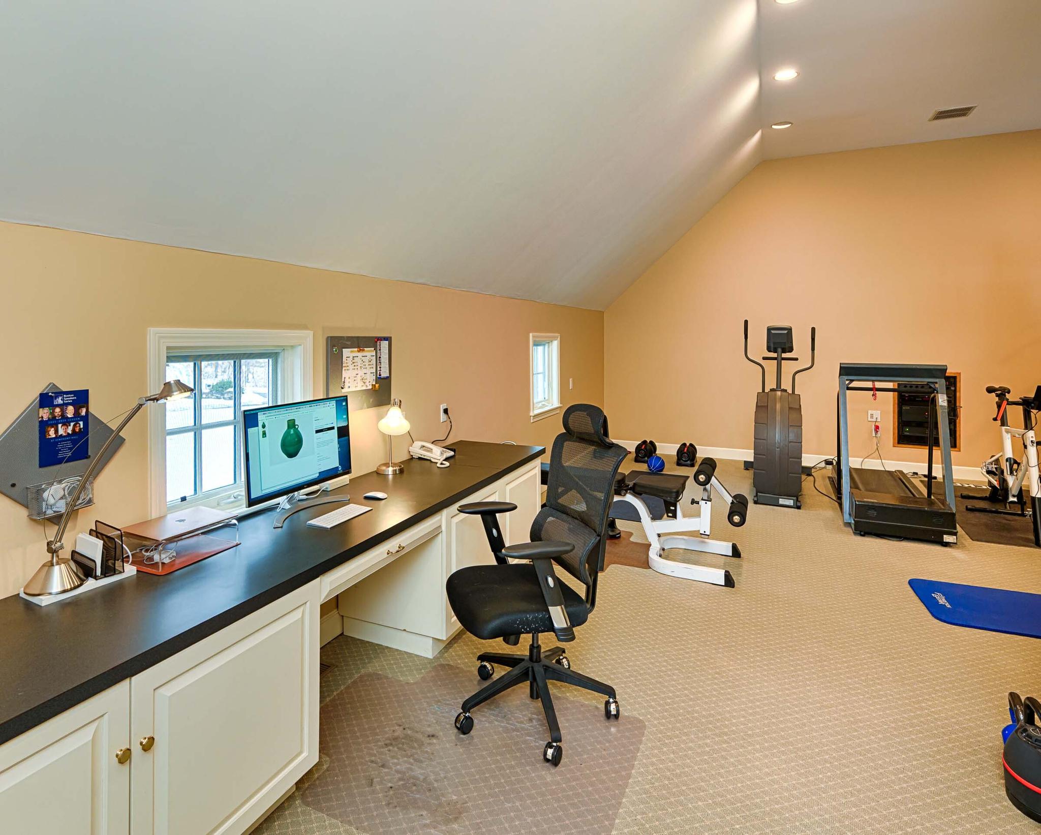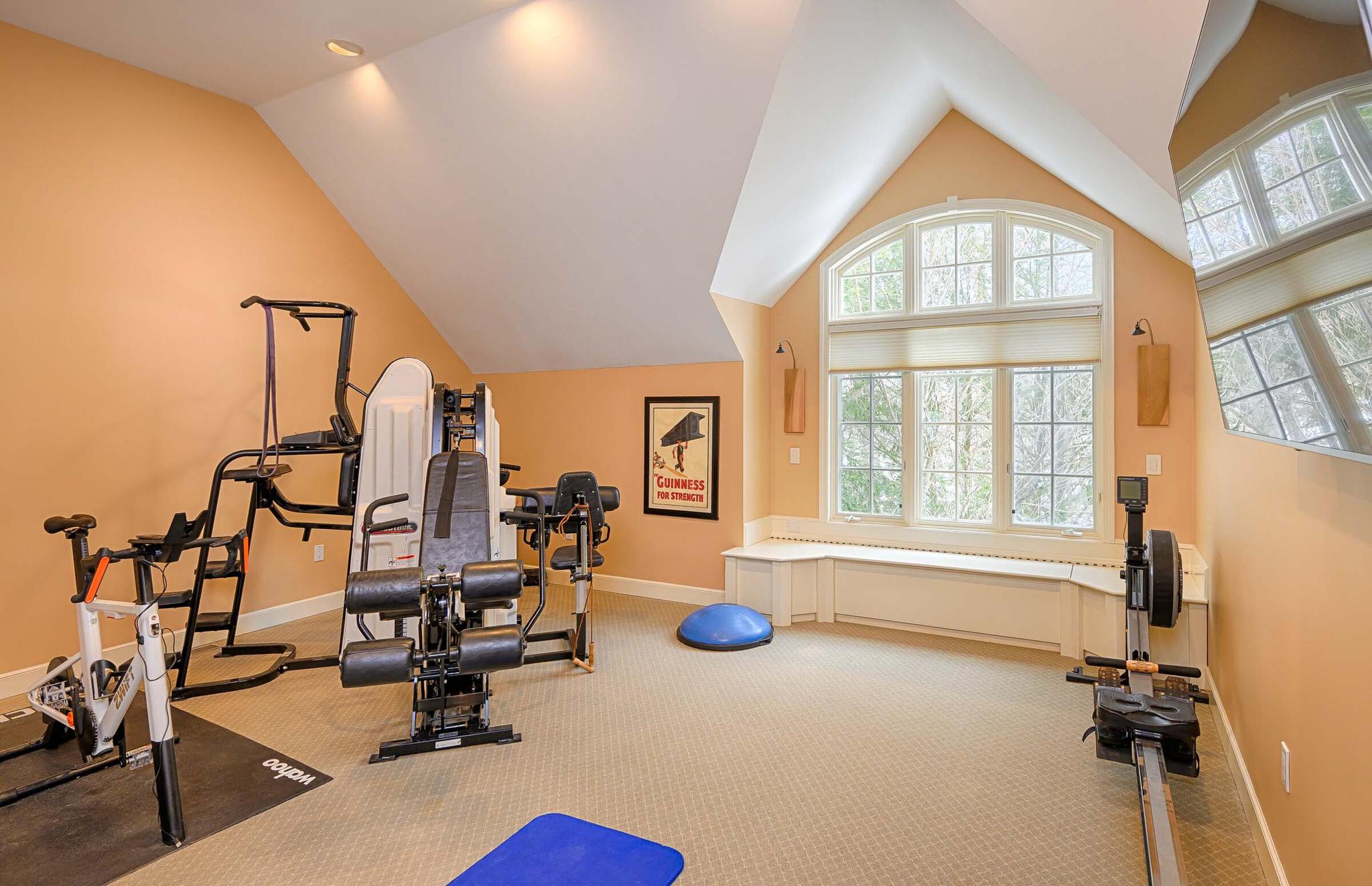 Home gym on bedroom level with full bath and sauna