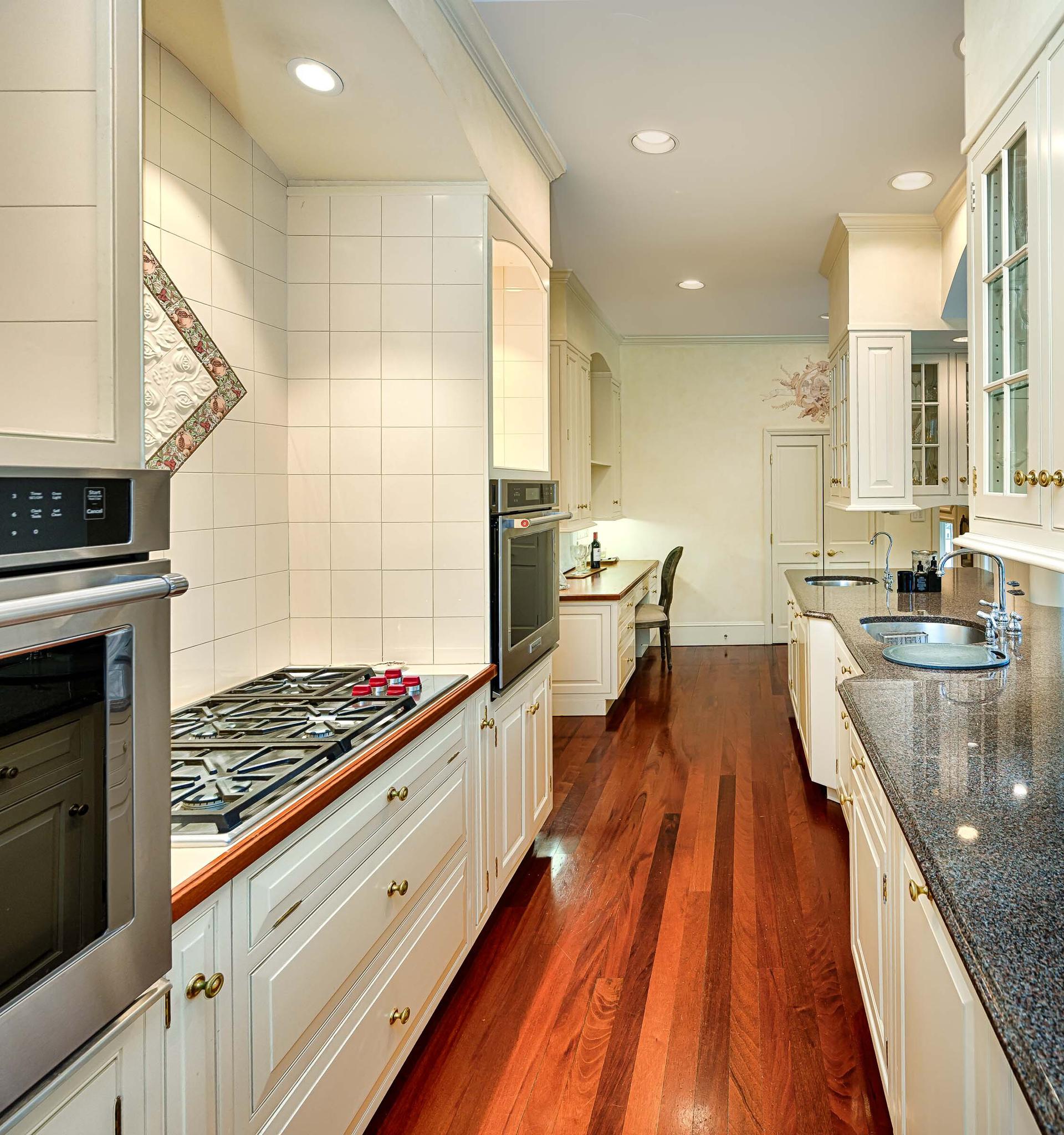 Chef’s kitchen with Wolf gas range, dual ovens, and dual dishwashers