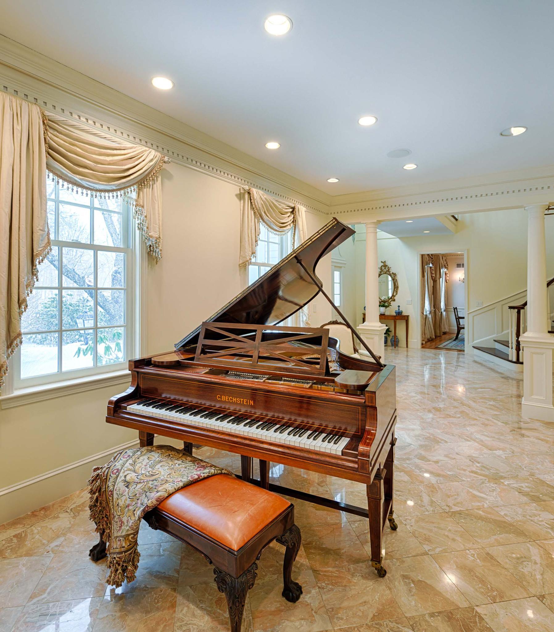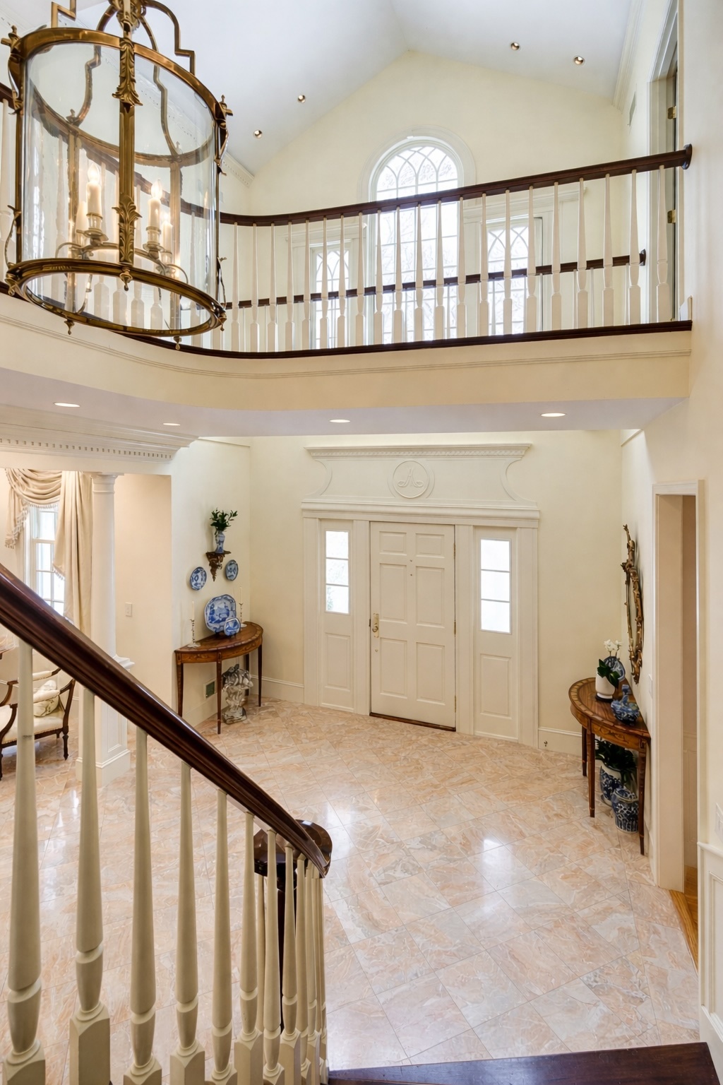 Grand two-story foyer with marble floors